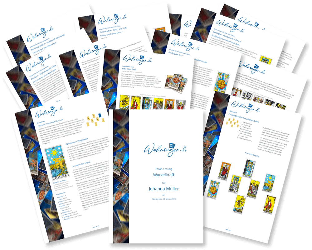 Machen Sie Ihren Liebsten eine Freude mit einer personalisierten Analyse. Über 26 Seiten und verfasst in mehr als 8300 Wörtern, erhalten Sie individuelle und ausführliche Details über Ihre Legung und Ihre ausgewählten Karten.